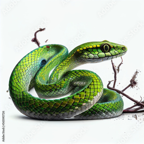 Obraz premium Asian Vine Snake full body image with white background ultra realistic