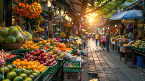 © ANEK, Fototapeta premium Asian walking street market with traditional local Thai cottage style at countryside of Thailand.