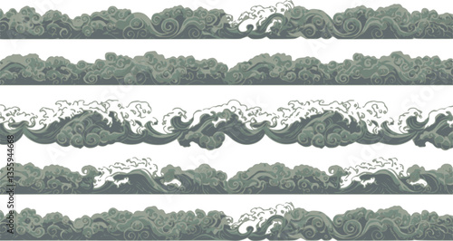 © Anomal, Obraz premium asian wave border. cloud pattern tile. water sea waves vector set