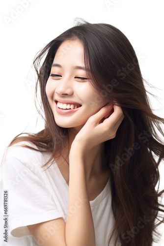 Fototapeta premium asian woman, elegant profile, gentle smile, pristine attire isolated...