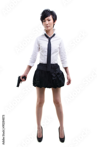 © wong yu liang, Fototapeta premium asian woman holding a gun