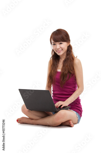 © 현수 김, Fototapeta premium Asian woman lying down with laptop isolated on white background.