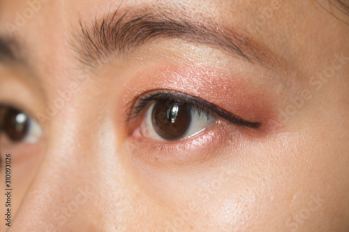 © AgS Saptono, Fototapeta premium Asian women eyes staring at a distance object, with selective focus
