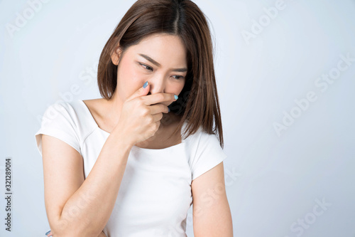 © Basicdog, Fototapeta premium Asian women have sneezing and difficulty breathing, Isolated on a white background.