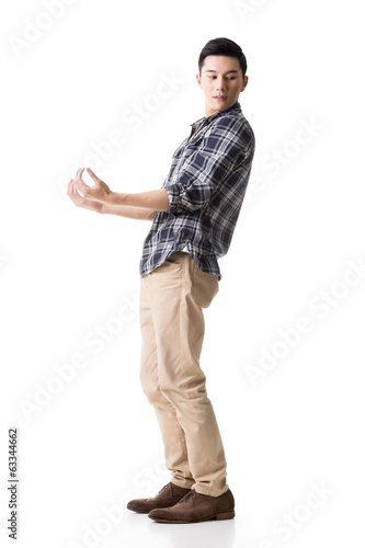 © ChenPG, Naklejka premium Asian young guy carry or take something