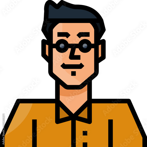 © Mangsaab, Fototapeta premium Asian young man. Filled outline icon design