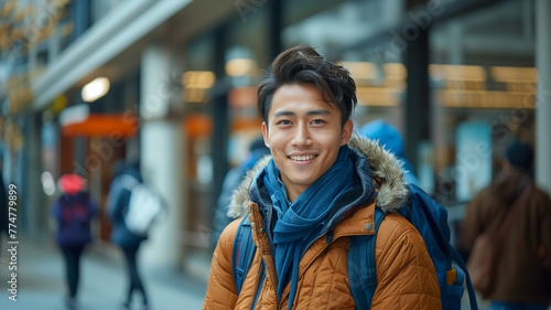 © Art of Ngu, Fototapeta premium Asian young man student smiling at camera in university
