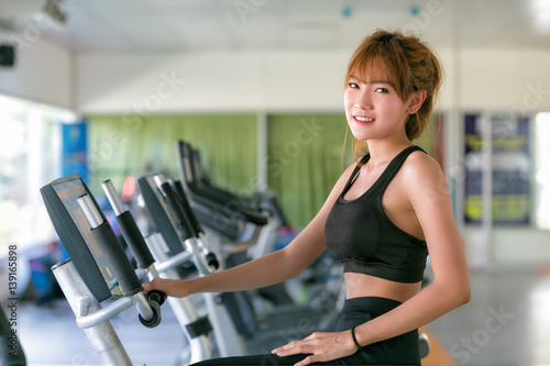 Obraz premium Asian young woman in sport wear doing sport in gym.