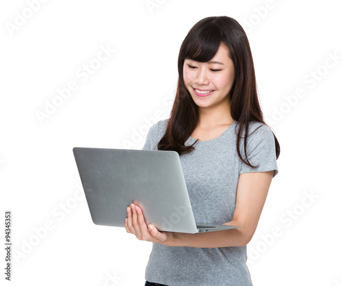 © leungchopan, Fototapeta premium Asian Young woman watch on the laptop computer