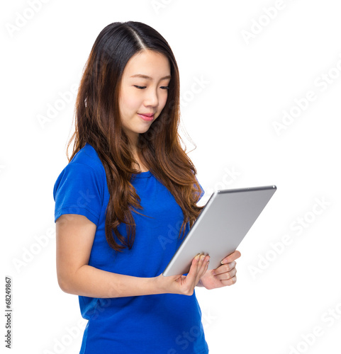 © leungchopan, Fototapeta premium Asian young woman with tablet