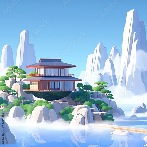 Fototapeta premium Asian Zen Floating House