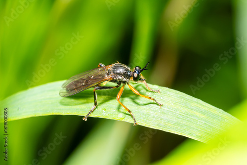 © Colombe Delons, Fototapeta premium Asilide Dioctria rufipes posé sur une feuille de graminée en milieu naturel