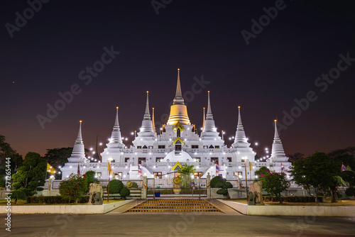 Naklejka premium Asokaram Temple, Samut Prakan twilight night Province Important old temple...