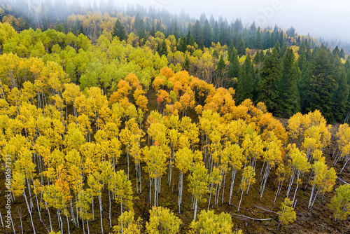 Naklejka premium Aspen forest in full fall color as seen from above