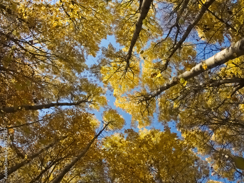 © Alexey, Fototapeta premium Aspen trees against the blue sky