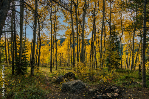 © Greg Birkett, Obraz premium Aspens backlight with autumn colors.