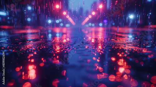 Obraz premium Asphalt close up, Heavy Rain reflection with neon