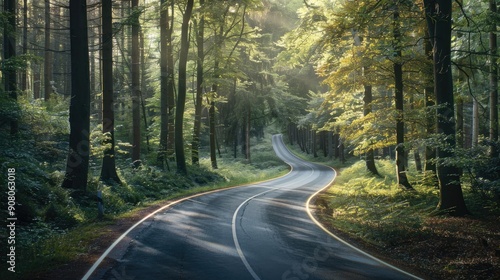 © Dvid, Obraz premium Asphalt cuts through the beautiful forest Generative AI