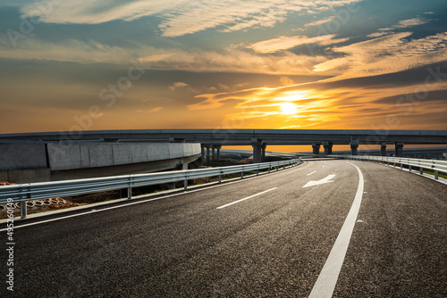 © ABCDstock, Fototapeta premium Asphalt highway and beautiful sky cloud landscape at sunset. Road and sky cloud background.