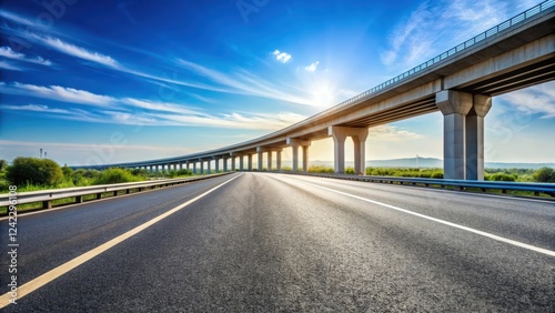 Fototapeta premium Asphalt highway and bridge stretching under clear blue sky , highway,...