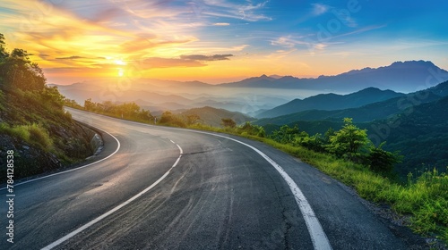 © buraratn, Naklejka premium Asphalt highway road and mountain natural scenery at sunrise. panoramic view.
