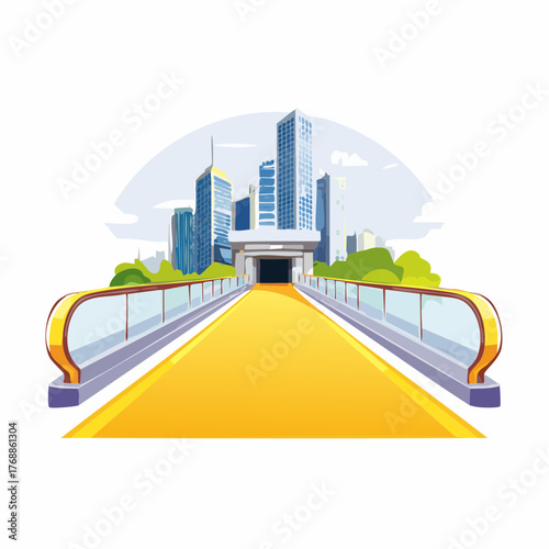 © MDMESBA, Fototapeta premium Asphalt highway road and pedestrian bridge with modern city buildings scenery 1