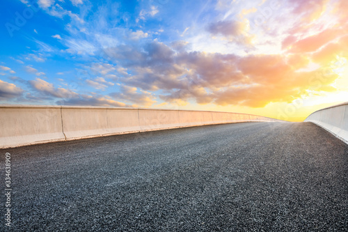 © ABCDstock, Naklejka premium Asphalt highway road and sky sunset clouds landscape.