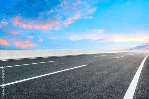Fototapeta premium Asphalt highway road and sky sunset clouds landscape.