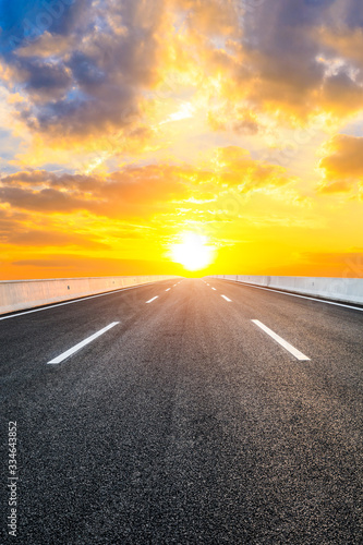 © ABCDstock, Naklejka premium Asphalt highway road and sky sunset clouds landscape.