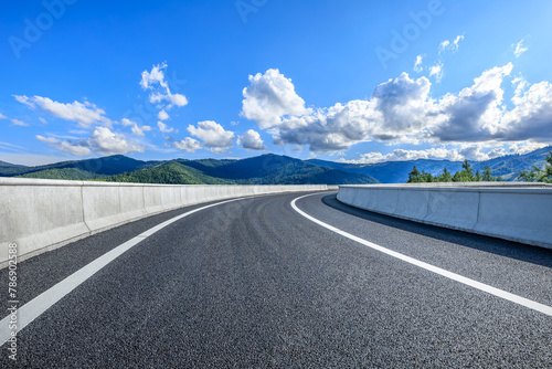 © ABCDstock, Fototapeta premium Asphalt highway road with mountain nature landscape on a sunny day