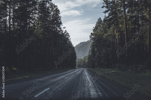 Fototapeta premium asphalt mountain road between pines