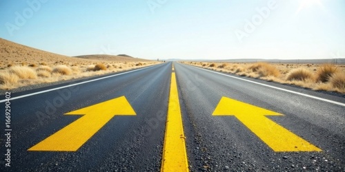 © napak, Naklejka premium Asphalt Pathway Forward A Journey of Dual Choices on a Long, Straight Road Ahead