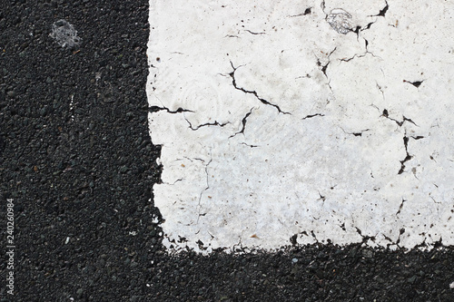 Obraz premium Asphalt pavement sign marking crosswalk white paint wet old surface texture detail