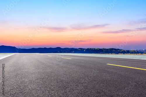© ABCDstock, Fototapeta premium Asphalt road and beautiful mountain nature landscape at sunset