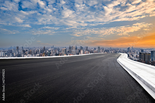 © zhao dongfang, Fototapeta premium Asphalt road and city buildings skyline background in Shanghai