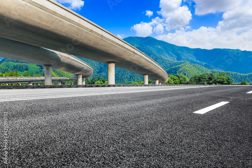 © ABCDstock, Fototapeta premium Asphalt road and green mountain natural landscape.