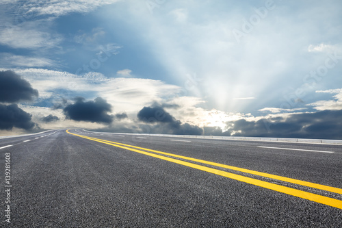 © ABCDstock, Fototapeta premium Asphalt road and sky at dusk