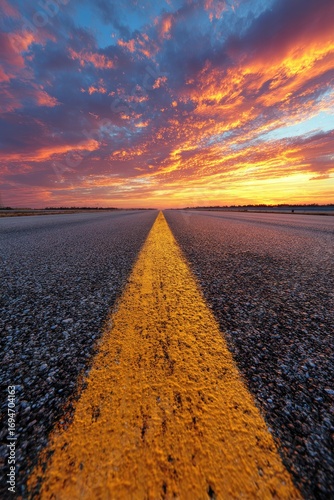 © Golf, Fototapeta premium Asphalt road at sunset (2)