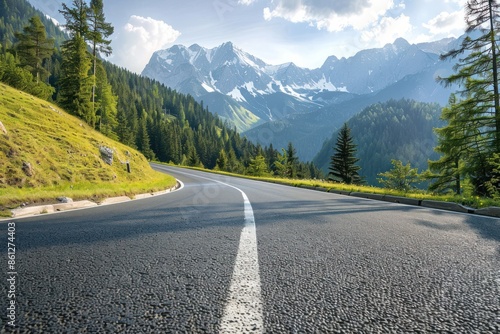© Tisha, Fototapeta premium Asphalt road in Austria, Alps in a summer day.