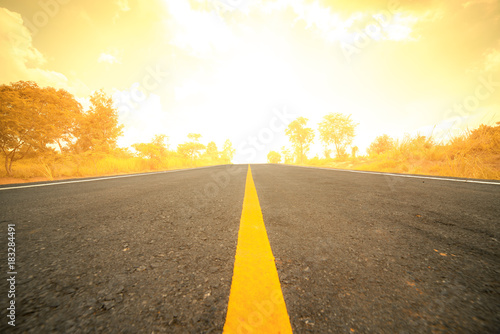© bohbeh, Naklejka premium Asphalt road in rural with golden color