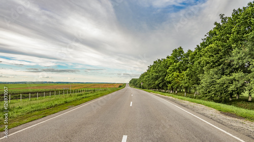 © nskyr2, Fototapeta premium Asphalt road in Russian countryside. Road stretches into horizon.