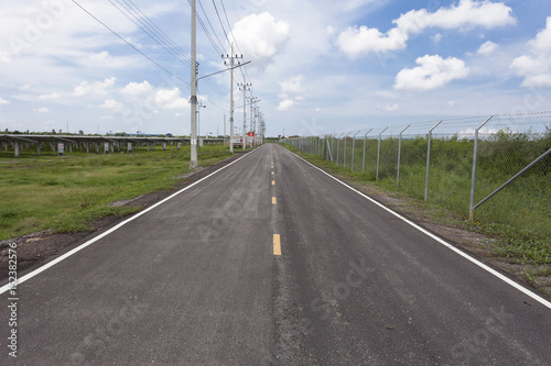 © Panya, Fototapeta premium Asphalt road in solar farm.