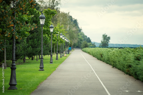 Fototapeta premium asphalt road in summer beautiful park