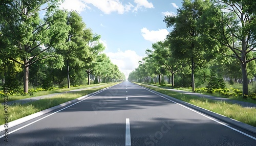 © Shipons Creative, Fototapeta premium Asphalt road in the park with green trees