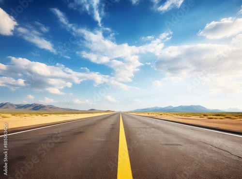 © Darcraft, Naklejka premium Asphalt road in the sunset sky with clouds and sun rays.