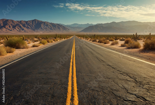 © Sergiy Serdyuk, Fototapeta premium Asphalt road laid in the distance to the horizon. Generative AI