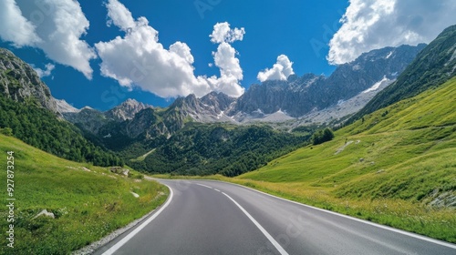 © Nas, Naklejka premium Asphalt Road Leading Through Majestic Mountains