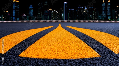 © Sirichai, Fototapeta premium Asphalt Road Leading to City at Night
