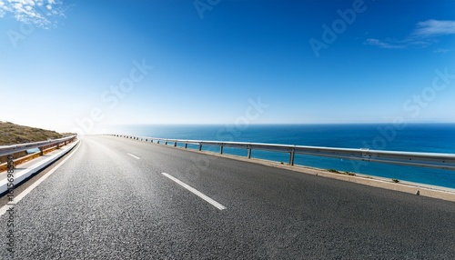 Fototapeta premium asphalt road leading to ocean with clear blue sky great for vacation banners...