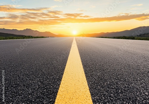 Fototapeta premium Asphalt Road Leading to Sunset Mountains